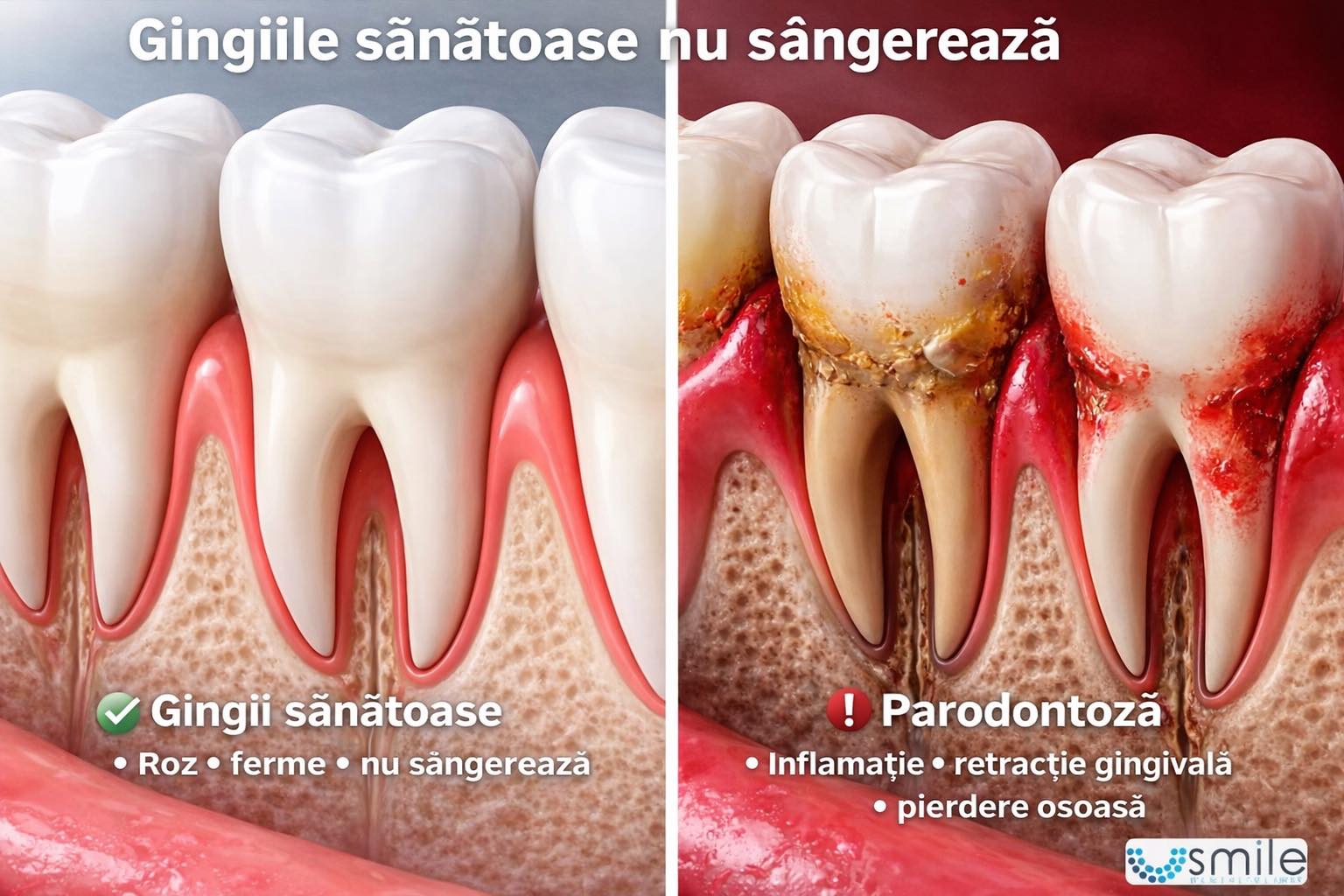 Parodontoza nu începe cu durere.Începe discret — cu o sângerare ușoară, un miros neplăcut sau o retracție gingivală abia vizibilă. Este o afecțiune cronică a